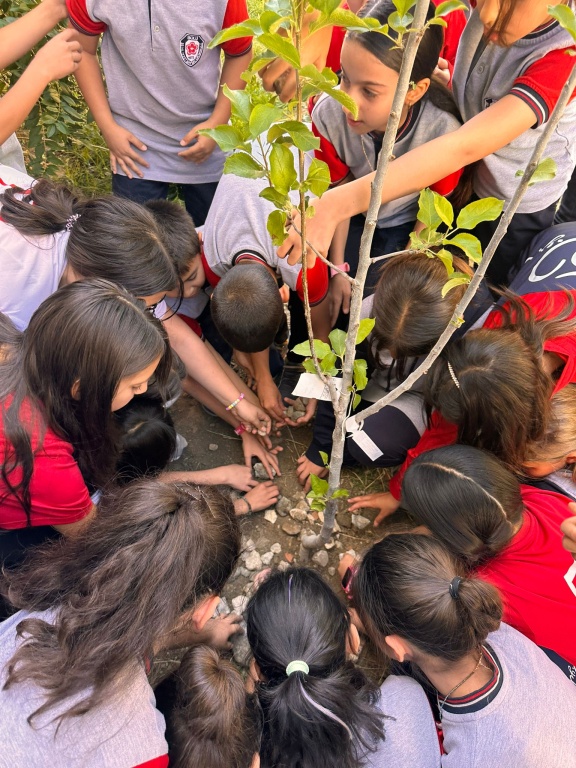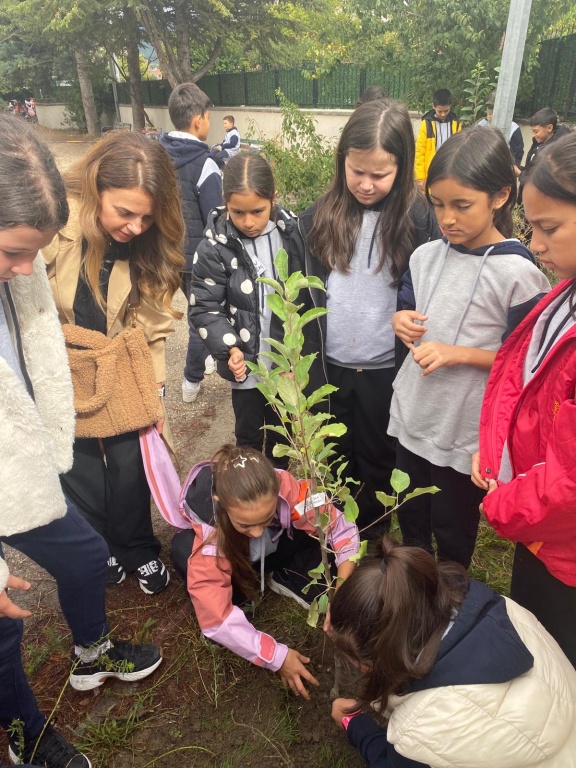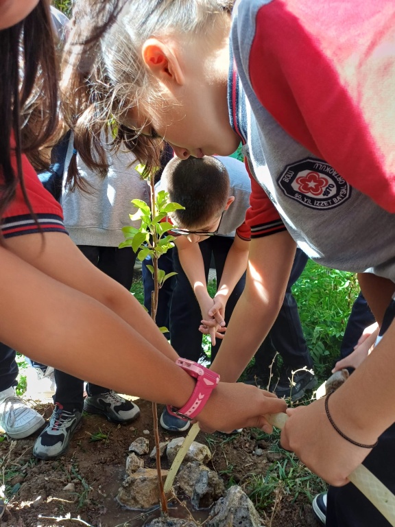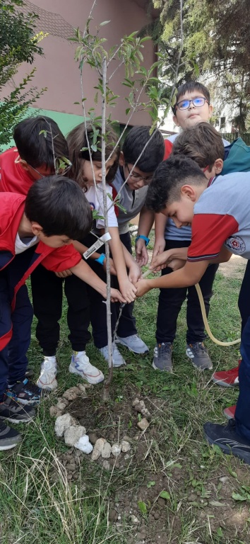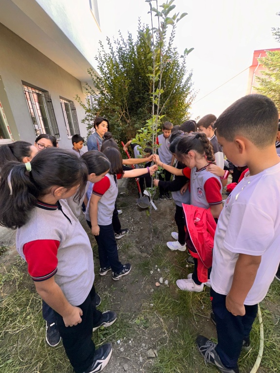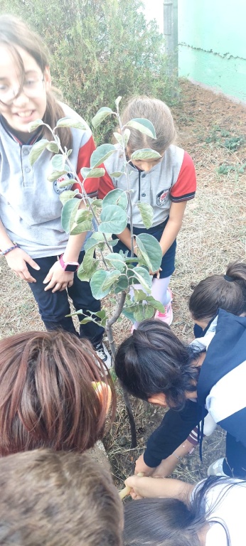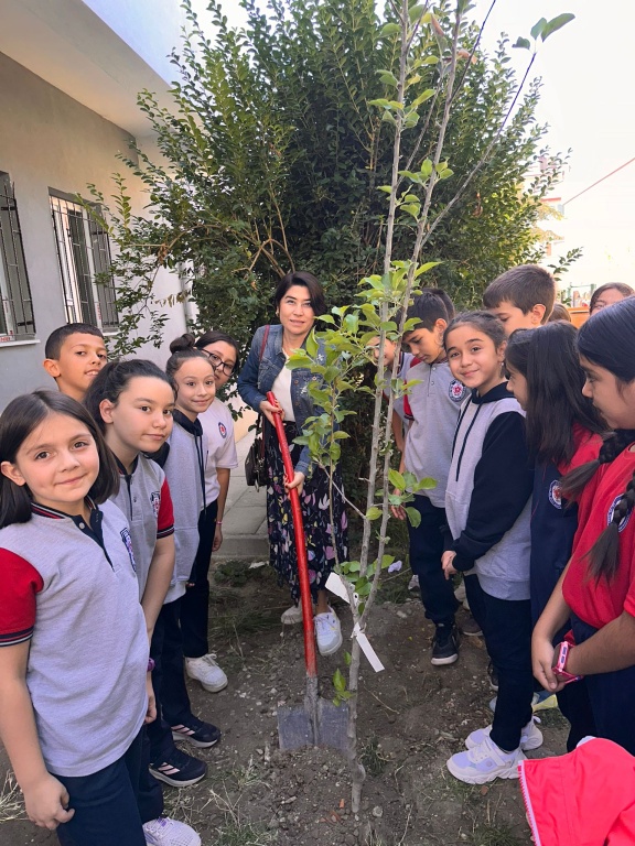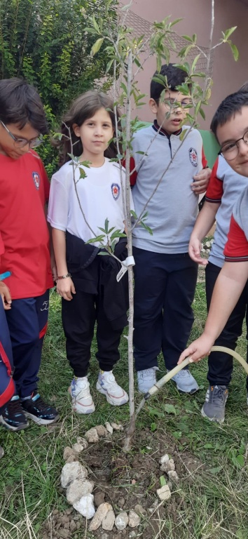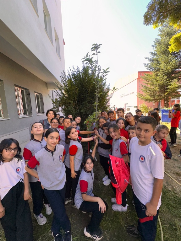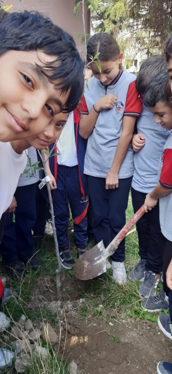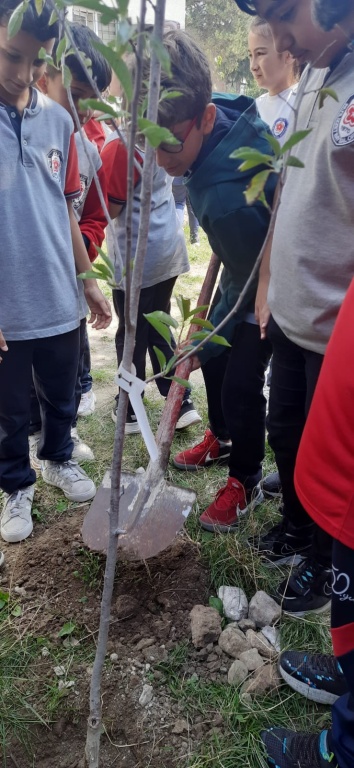 Öğrencilerimiz ve öğretmenlerimiz el birliğiyle okul bahçemize elma, kiraz ve cennet hurması ağaçları dikti. Ülkemizde son yıllarda yaşanan orman yangınlarına dikkat çekmek, bizlere emanet edilen vatana sahip çıkmanın önemini vurgulamak amacıyla yapılan bu etkinlik, öğrencilerimize doğa sevgisini aşılamak ve gelecek nesillere daha yeşil bir vatan bırakmak adına önemli bir adım oldu. Doğaya bırakılan her fidanın geleceğe umut olduğunun bilinciyle, okul ailemiz olarak bizler de “Yeşil Vatan” için sorumluluk almanın gururunu yaşadık.